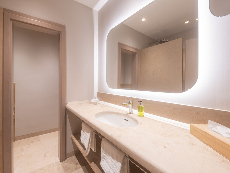 - für die Sauna, Infrarotkabine und das Hallenbad liegen flauschige Leihbademäntel und Badetücher in den Zimmern bereit